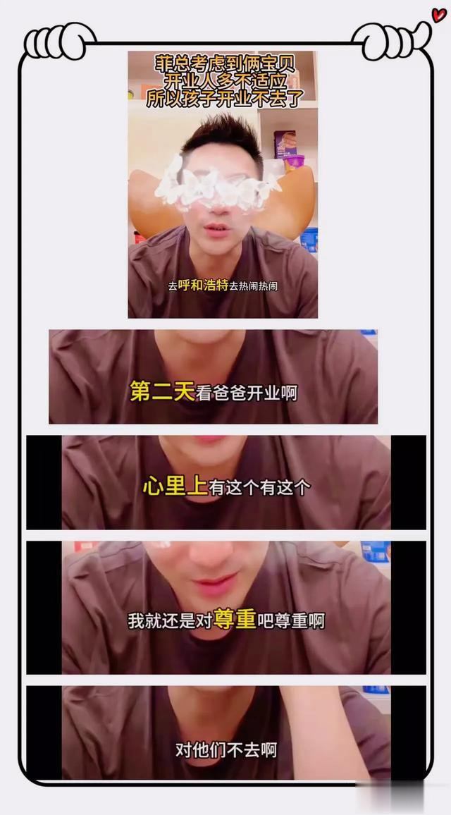 汪小菲直播的时候有网友说小箖箖小玥儿马上回北京,据悉汪小菲早都安排好了带他们去大草原,正好呼和浩特麻六记开业,网友在直播间问汪小菲,正好孩子放假,会不会考虑带两个孩子去顺道去麻六记开业现场玩,看看爸爸的事呢,开业还有舞狮子活动,汪小菲说其实按理说都在那边,第二天开业一家人可以过去热闹热闹,可是那样的话肯定会有人拍到两个孩子,汪小菲说考虑对人家的尊重,(他虽然没提大S名字,网友都知道大S生前不喜欢俩孩子出镜,所以汪小菲说不带孩子去开业现场,