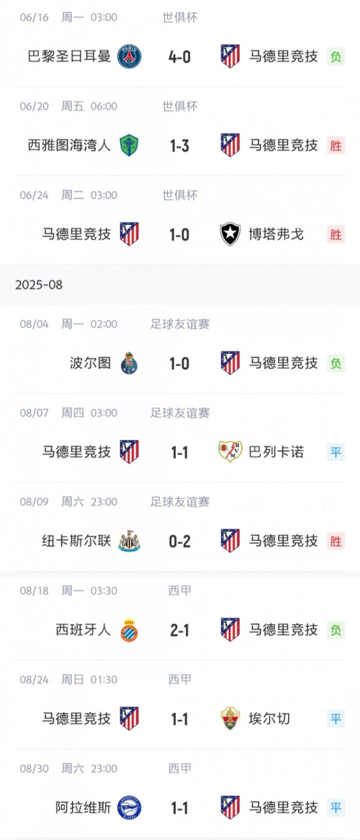 直播吧8月31日讯西甲第3轮马竞客场1-1战平阿拉维斯,新赛季开局2平1负未尝胜绩。