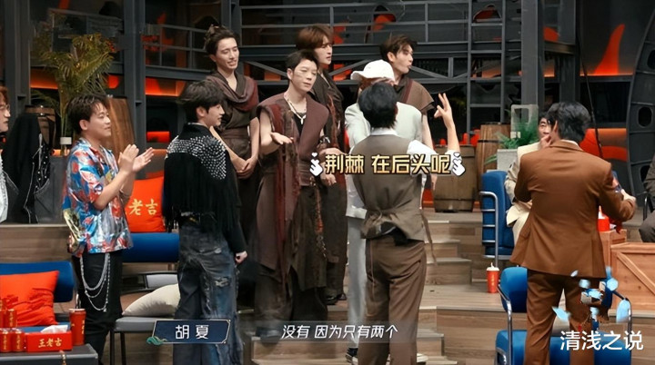 王栎鑫、热狗才不管这些,继续调侃胡夏,说他这一公最大的披荆斩棘就是点火,《青花》开始时那个点火的动作。胡夏既有点无奈又有点心塞,强调客观原因着实是只有两个角色了,没有轮到他去跳,但主观原因也不得不承认自己着实是跳出舒适区的心不够强,也不怪大家笑他不够披荆斩棘,所以他承诺“我后面跳。”至于跳不跳得看后面节目才知道了。