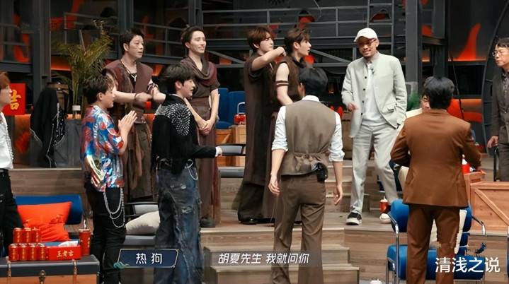 X-Brothers和大湾仔同盟在三公第一轮PK中,以唱演舞台《青花》赢了快乐老咖和INTO万(即快乐大万)同盟的唱跳歌曲《宝莲》。当《青花》组回到后台接受完哥哥们的祝贺后,被《宝莲》累得不行的快乐大万成员率先调侃起胡夏来。先是张远说“胡夏,你也太舒适了吧。”王栎鑫甚至具体地侃胡夏“你这一公最大的披荆斩棘就是点那个火吧。”
