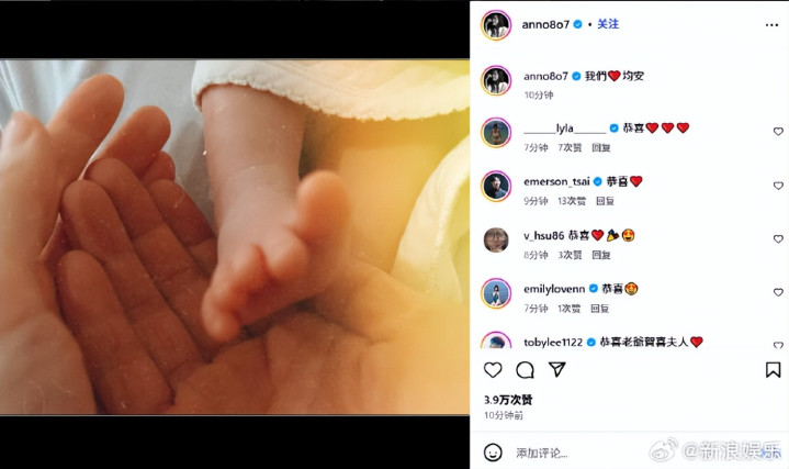 台媒随后爆料,两人第一胎是儿子,而且已经满月,他们还给亲友发了满月礼盒,在卡片中写有文字,公布儿子小名“IAN”。