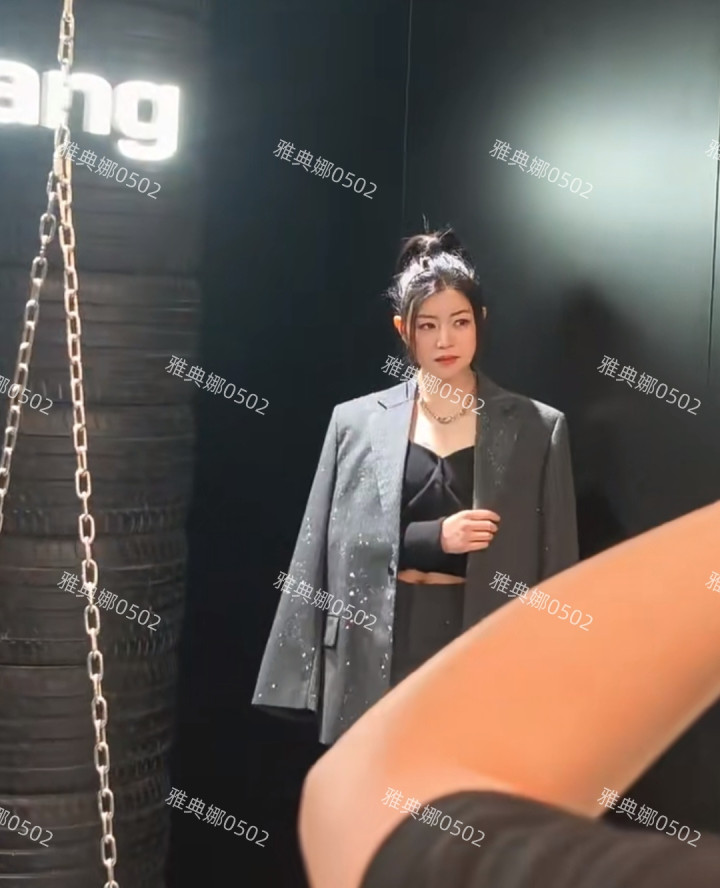 不知道是因为她太瘦小了,衣服撑不起来,还是提供的服装太大了,她披在身上那件灰色绣银线的西装,虽然硬凹甜辣造型,但却像小孩穿了大人衣服,没有穿出风格气场很弱。