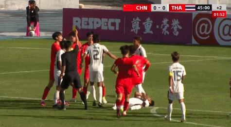 八分钟后,毛伟杰远射被扑,刘诚宇紧接着头球攻门击中左侧立柱——这是中国队上半场最接近得分的机会。