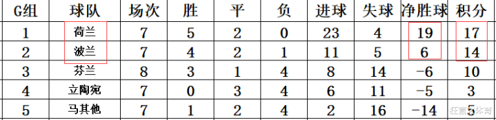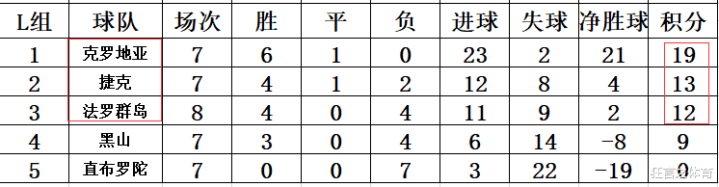 积分榜方面,A组,德国和斯洛伐克今天都赢了球,这样的话德国还是没法拉开分差,两队还是同分,德国3个净胜球优势守住第一,A组就和B组,I组一样,最后两轮前2两队展开生死战,谁赢谁就夺得小组第1直接晋级世界杯正赛(德国、挪威和瑞士占据主动,打平就能出线)。G组今天进行了榜首大战,波兰无力在主场击败荷兰,这样的话他们只剩下理论上夺第1的希望,毕竟13个净胜球基本上是不可能追上了。L组,克罗地亚在主场击败法罗群岛后,L组的悬念提前结束,克罗地亚小组第1直接晋级世界杯,随着法罗群岛输球,捷克也就锁定了小组第2。